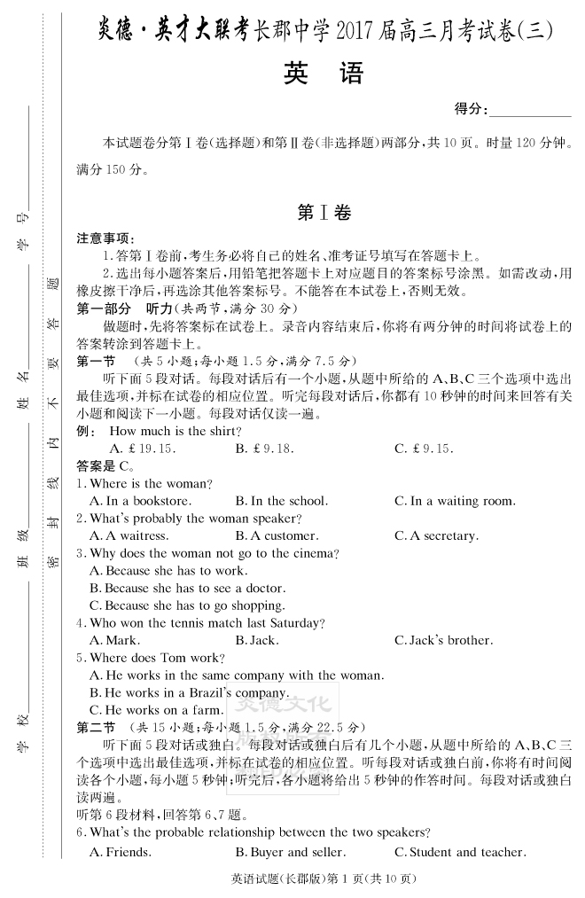 下一篇:【語文】炎德英才大聯考2017長郡中學高三3次月考