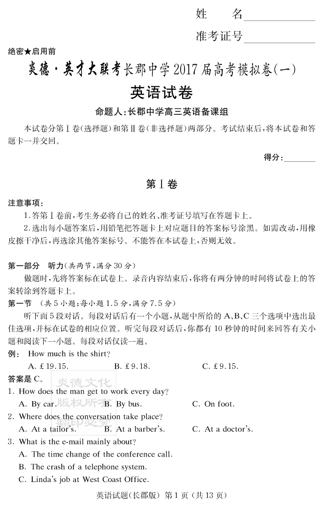 下一篇:【語文】炎德英才大聯考2017長郡中學高三9次月考(模擬一)