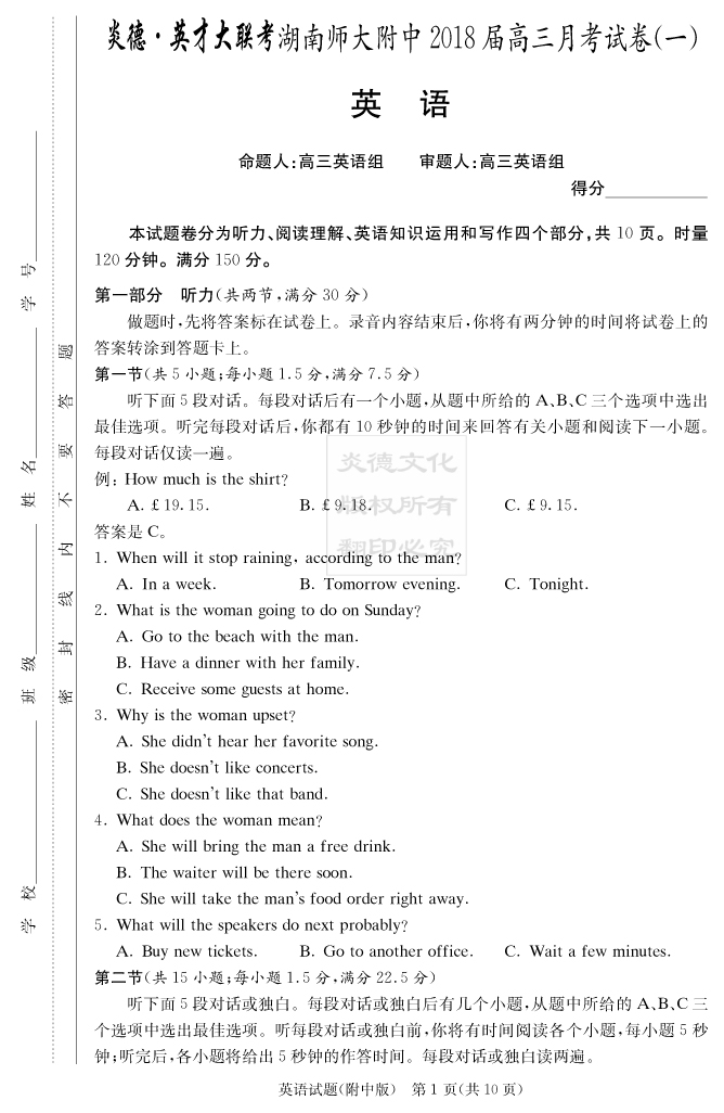 上一篇:【物理】炎德英才大聯考2018師大附中高三1次月考