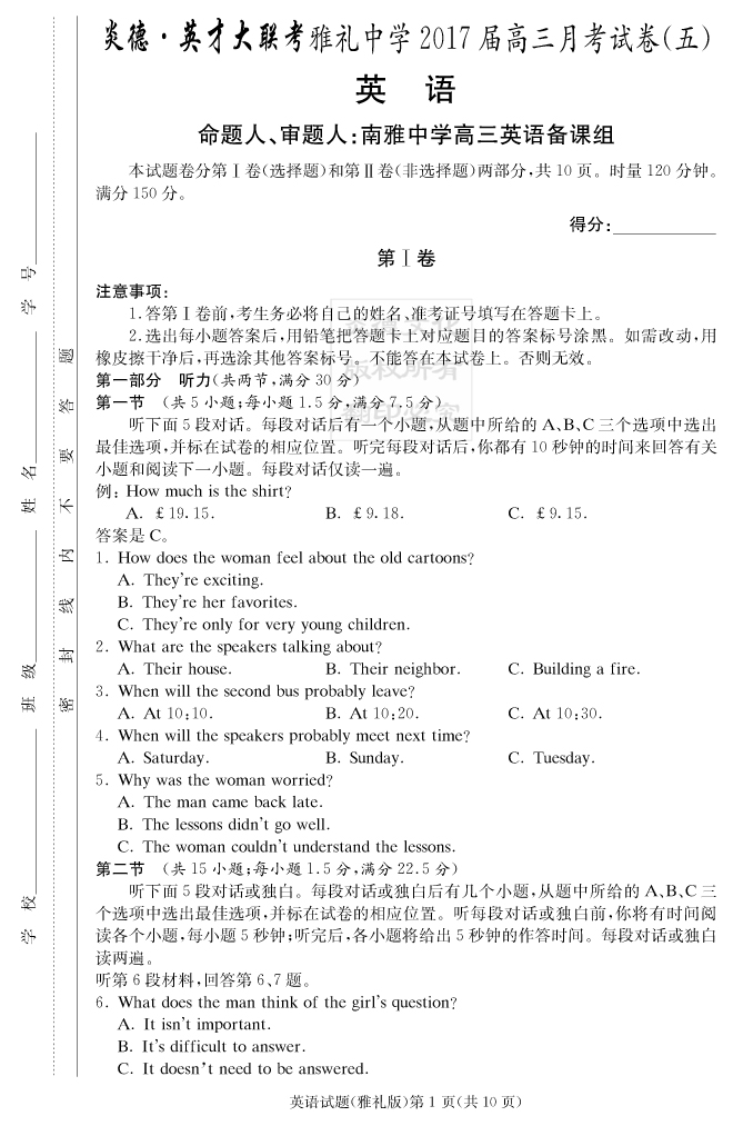 下一篇:【語文】炎德英才大聯考2017雅禮中學高三5次月考