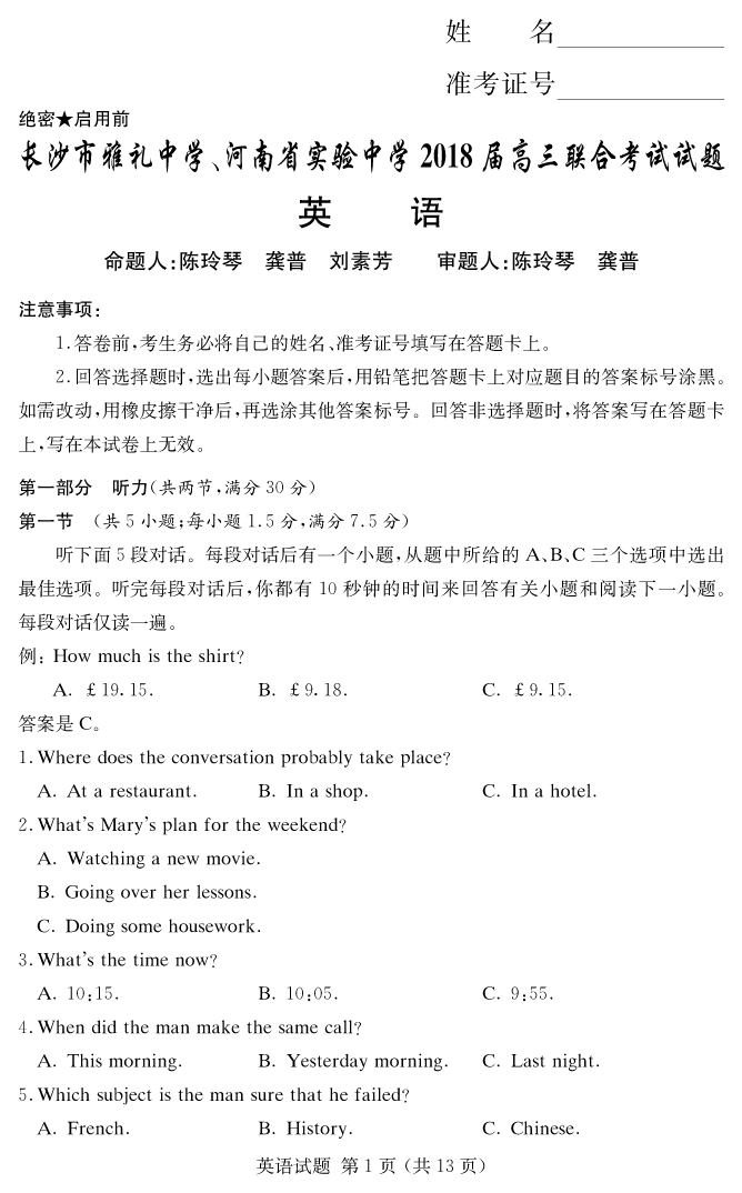 下一篇:【語文】炎德英才大聯考2018雅禮中學高三9次月考