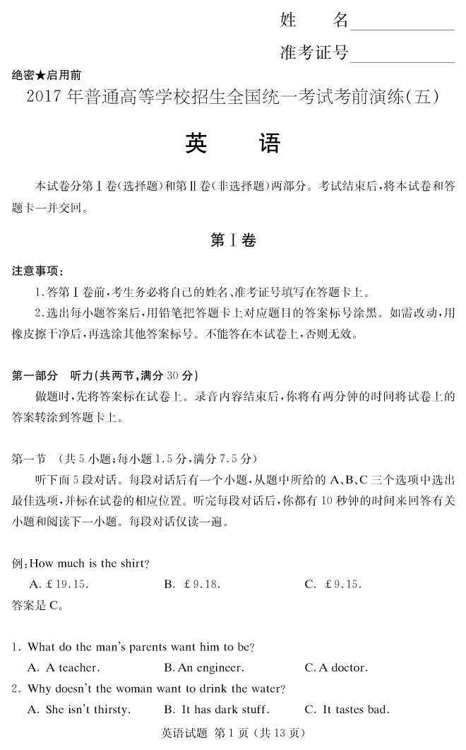 下一篇:【語文】2017年普通高等學校招生全國統一考試考前演練(五)