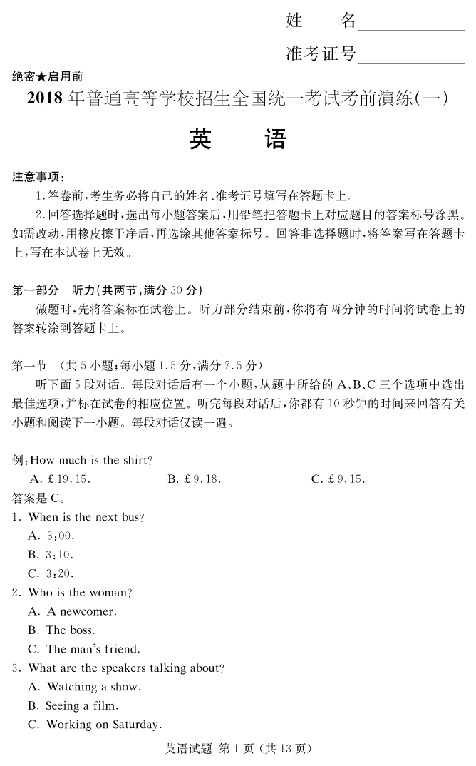 下一篇:【語文】2018年普通高等學校招生全國統一考試考前演練(一)