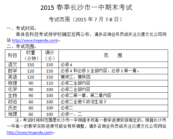 來源:炎德文化點擊:2015-06-24 21:19:11收藏本文當前位置:考試范圍 長沙一中 高一 正文