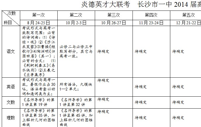 下一篇:炎德英才大聯考長沙市一中2014屆高三長沙市一中第二次月考考試時間和范圍(2013.10.02