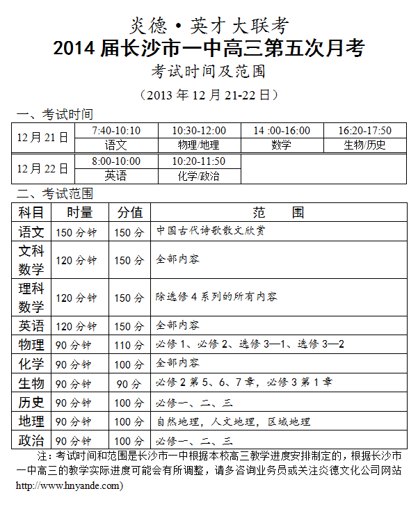 來源:炎德文化點擊:2013-12-13 18:55:27收藏本文當前位置:考試范圍 長沙一中 高三 正文