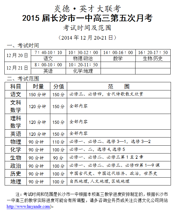 來源:炎德文化點擊:2014-12-15 09:09:08收藏本文當前位置:考試范圍 長沙一中 高三 正文