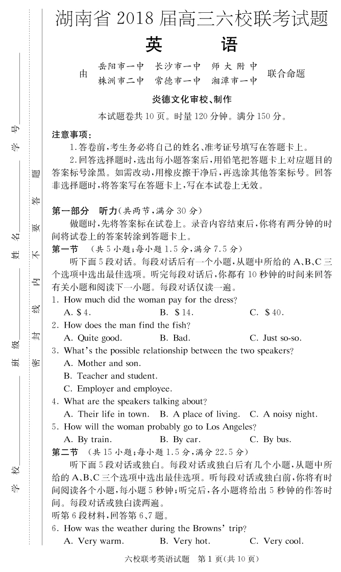 | 資源類別: | 名校月考 | |