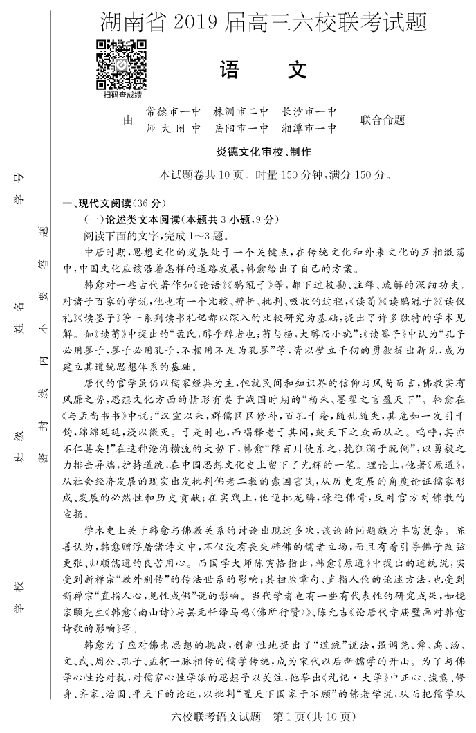 上一篇:【英語】湖南省2019屆高三六校聯考