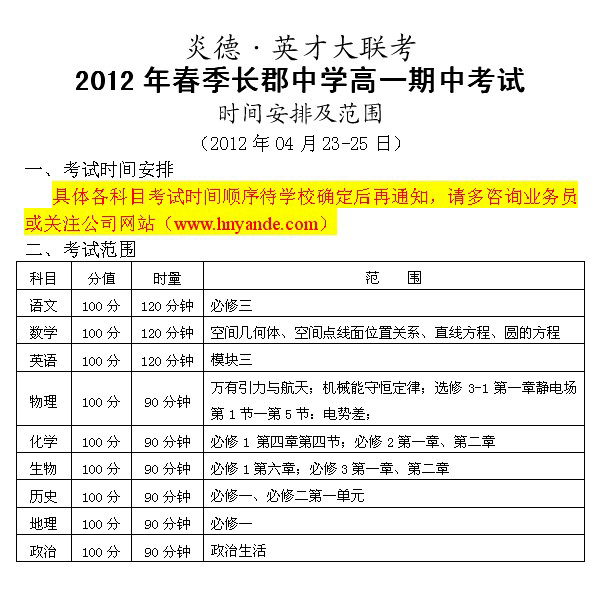 下一篇:長郡中學2012年春季高一高二期中考試時間安排