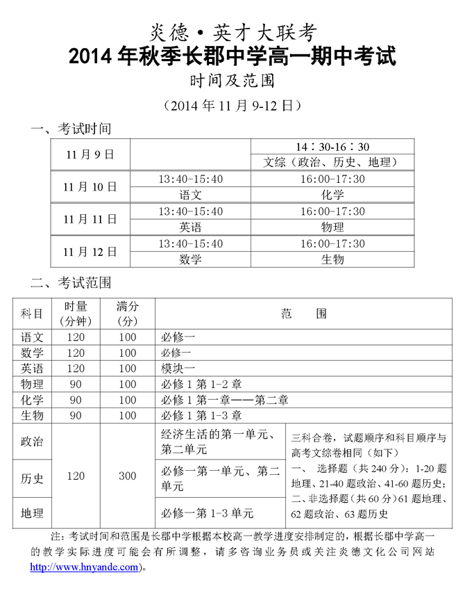 來源:炎德文化點擊:2014-10-27 17:32:19收藏本文當前位置:考試范圍 長郡中學 高一 正文