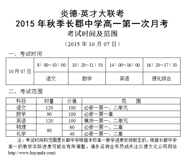上一篇:2015年春季長郡中學高一期末考試考試范圍(2015年7月8-10日)