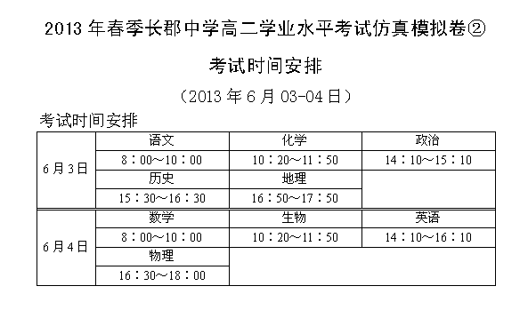 2013年春季長郡中學(xué)高二學(xué)業(yè)水平考試仿真模擬卷③考試時間范圍(2013.06.03-04)