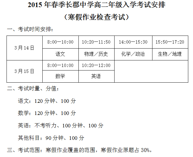 下一篇:2015春季長郡中學高二學業(yè)水平考試仿真模擬試卷一考試時間安排(2015年5月4-6日)