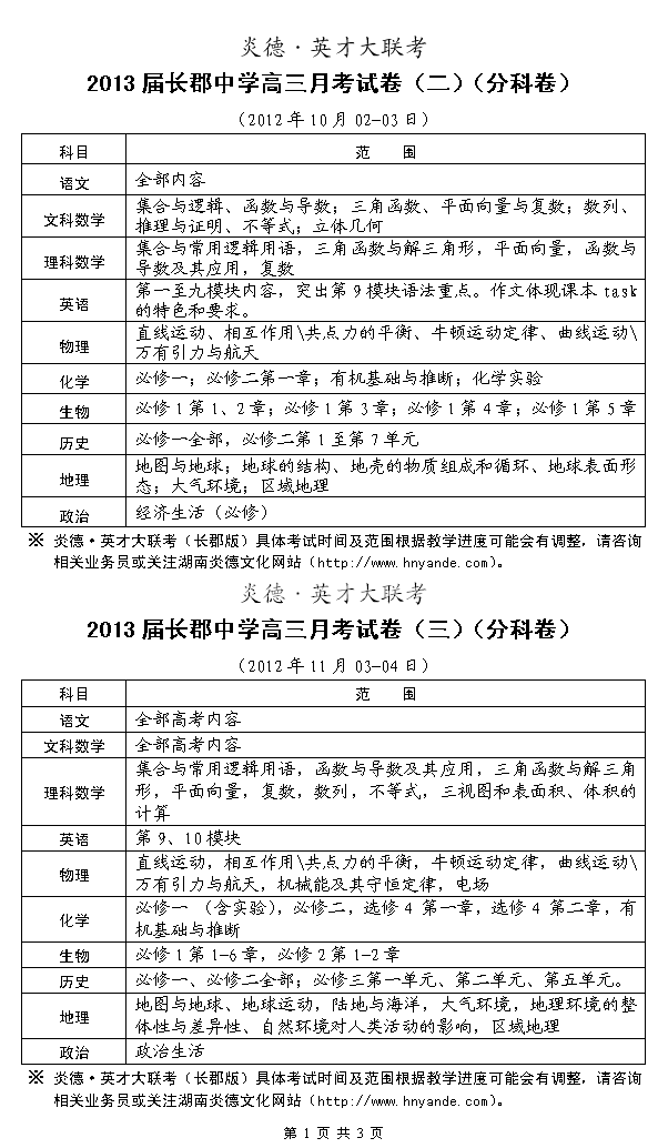 來源:炎德文化點擊:2012-09-11 14:22:49收藏本文當前位置:考試范圍 長郡中學 高三 正文
