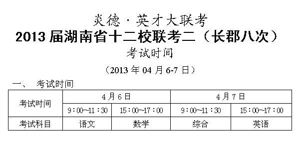 下一篇:炎德英才大聯(lián)考長郡中學2013屆高三第九次月考考試時間(2013年5月4-5日)