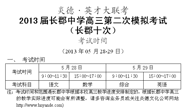 下一篇:炎德英才大聯考長郡中學2014屆高三第一次月考考試時間和范圍(2013.08.20-21)