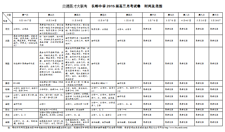 炎德英才大聯(lián)考長(zhǎng)郡中學(xué)2015屆高三月考試卷考試時(shí)間和范圍(第1-10次)