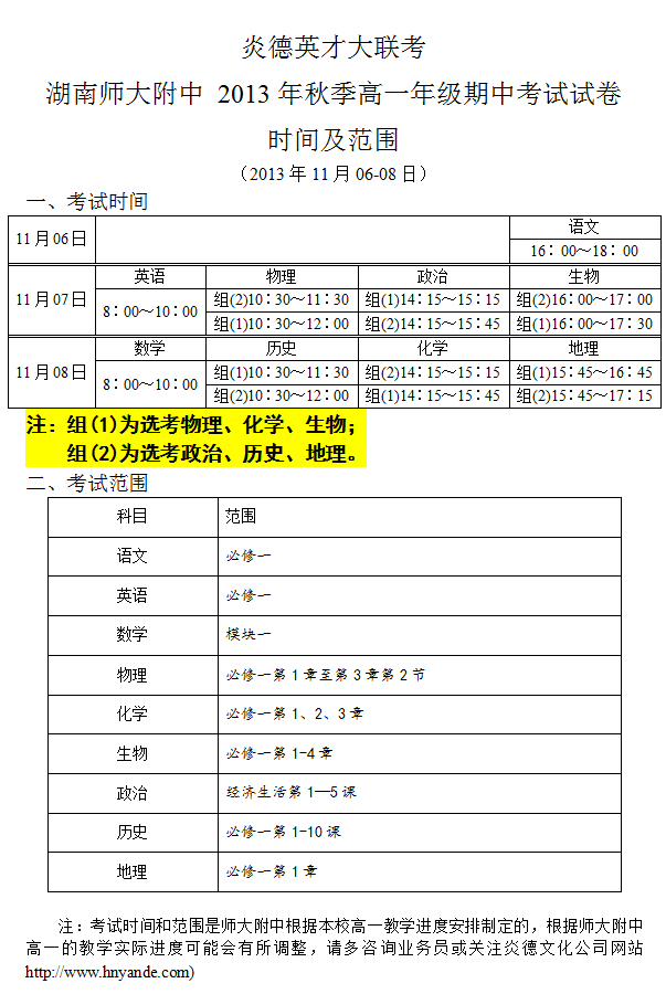 上一篇:2013年秋季師大附中高一年級第一次月考時間及范圍(2013.10.07)