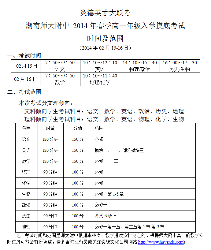 來源:炎德文化點擊:2014-02-09 10:03:42收藏本文當前位置:考試范圍 師大附中 高一 正文