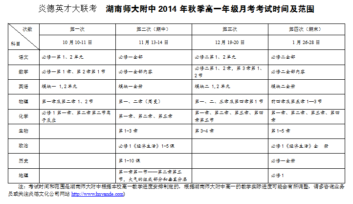 下一篇:炎德英才大聯考2014年秋季湖南師大附中高一第一次月考考試時間和范圍(2014.10.10-11)