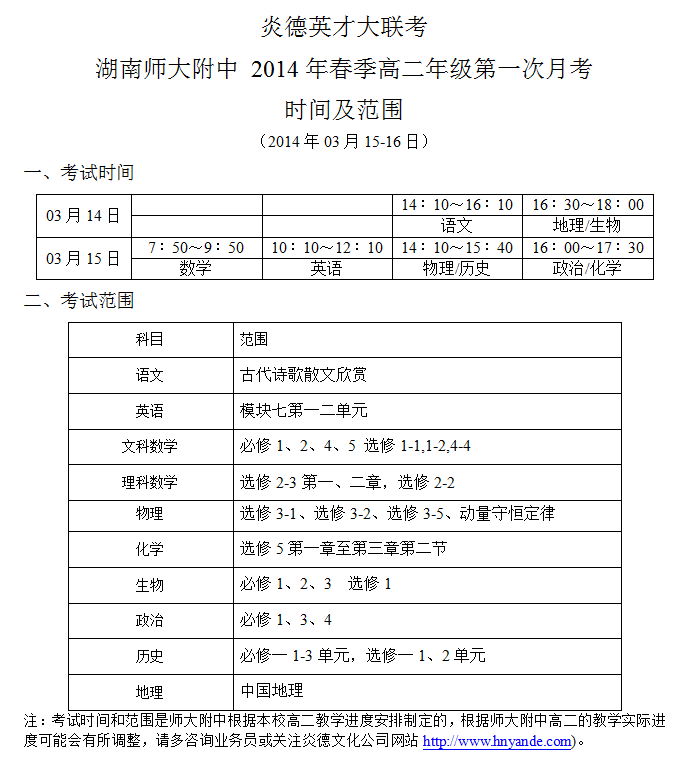 來源:炎德文化點擊:2014-03-08 16:06:15收藏本文當前位置:考試范圍 師大附中 高二 正文