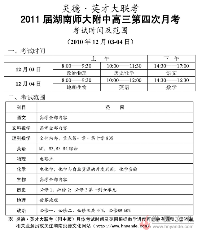 上一篇:炎德英才大聯考湖南師大附中2011屆高三第三次月考考試時間和范圍