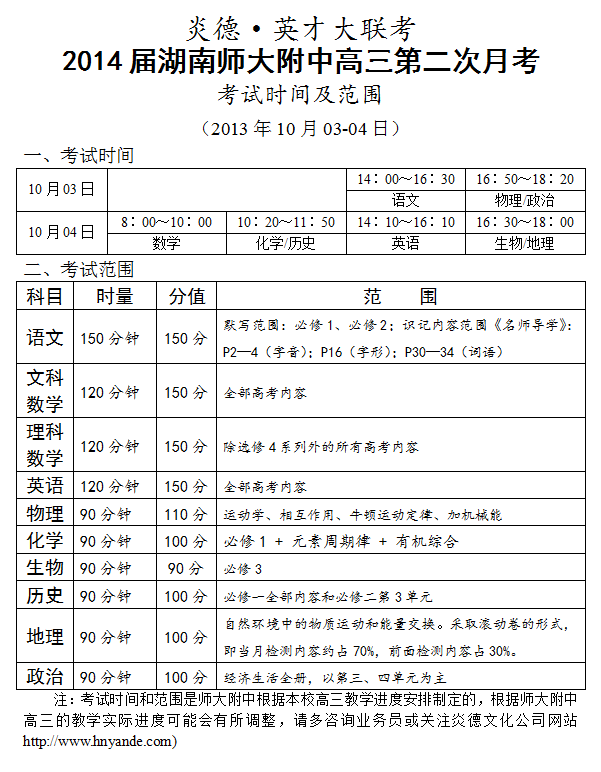 下一篇:炎德英才大聯考師大附中2014屆高三第3次月考考試時間和范圍(2013.11.07-08)