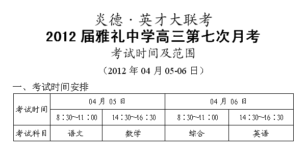 下一篇:炎德英才大聯考雅禮中學2012屆高三第一次模擬(第八次月考)考試時間和范圍