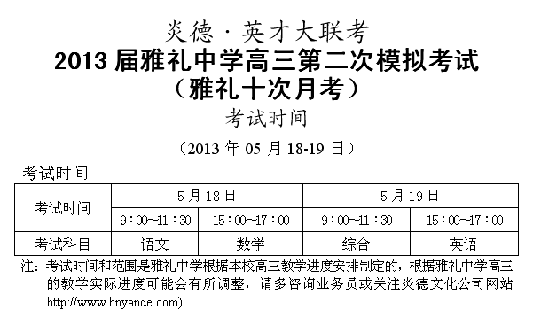 來源:點擊:2013-05-14 09:28:53收藏本文當前位置:考試范圍 雅禮中學 高三 正文