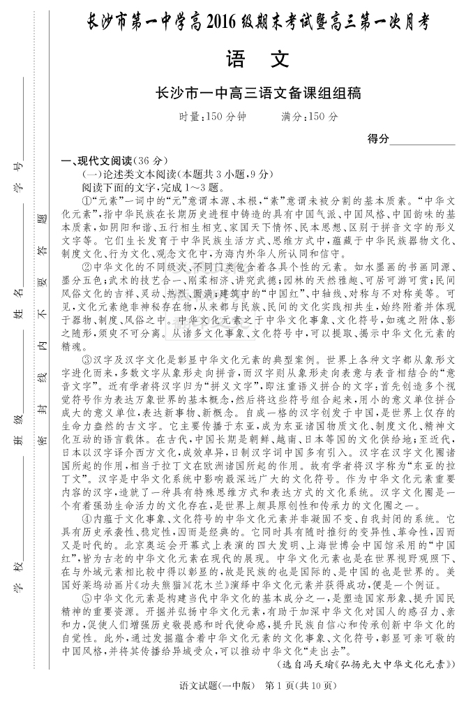 | 資源類別: | 名校月考 | |