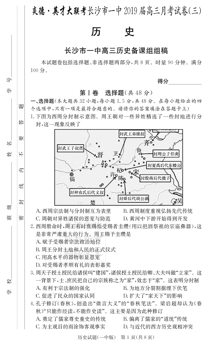 2026長郡中學新高考考前小題沖刺訓練·歷史