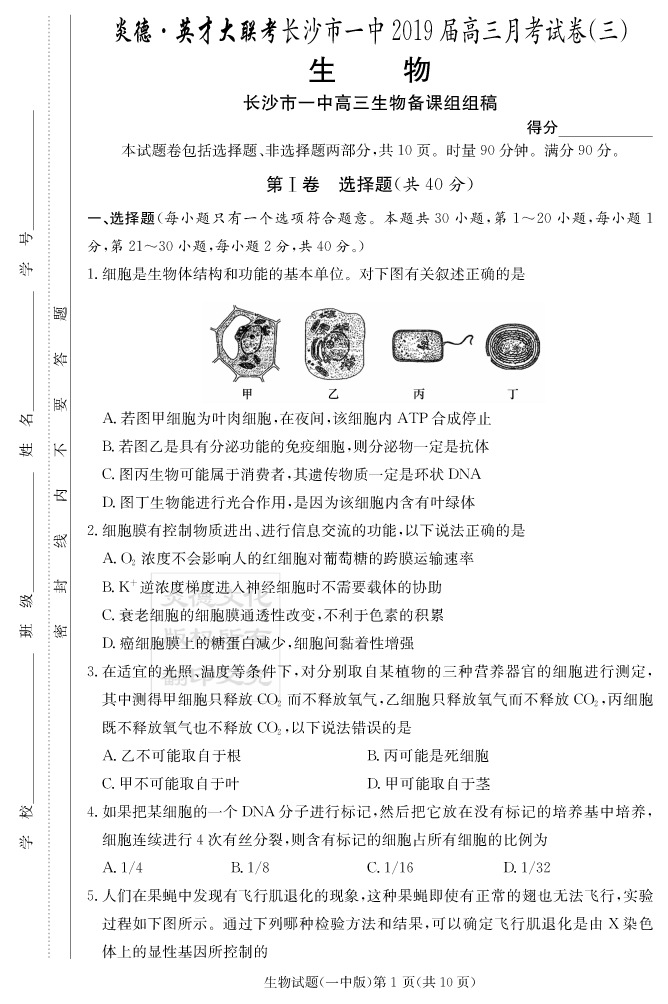 2026長郡中學新高考考前小題沖刺訓練·生物