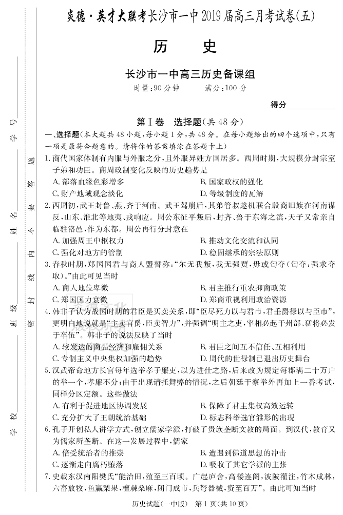 2026長郡中學新高考考前小題沖刺訓練·歷史
