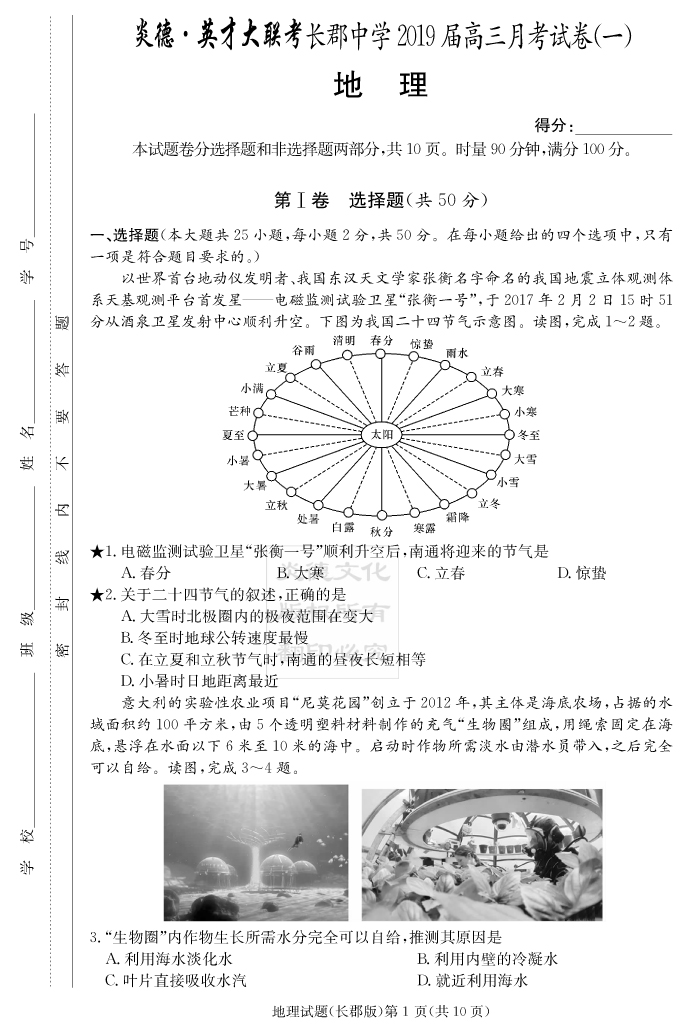 2026長郡中學新高考考前小題沖刺訓練·地理