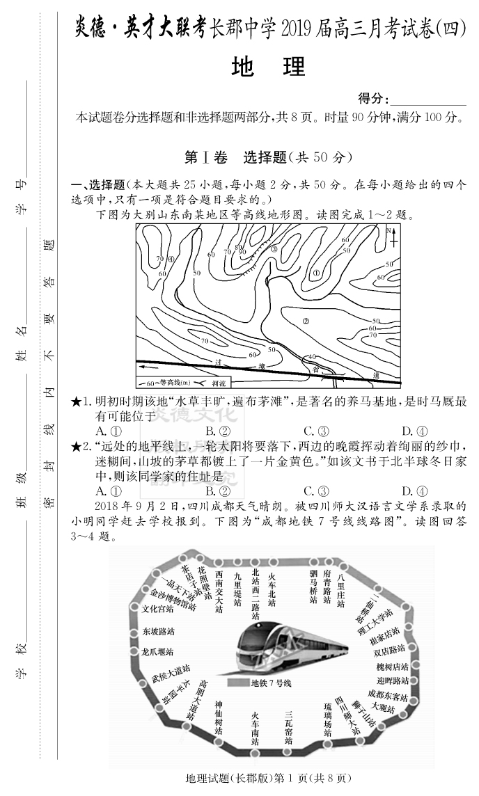 2026長郡中學新高考考前小題沖刺訓練·地理
