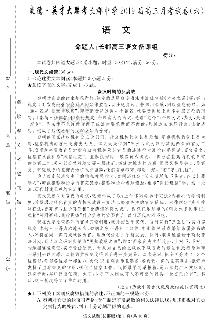 2026湖南師大附中新高考考前小題訓練·語文