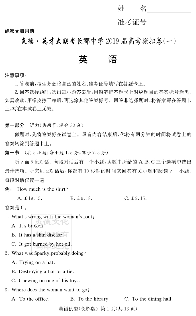 下一篇:【語文】炎德英才大聯考2019長郡中學高三9次月考(模擬一)