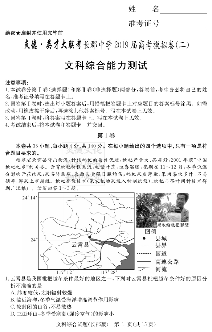 2026長郡中學新高考考前小題沖刺訓練·地理