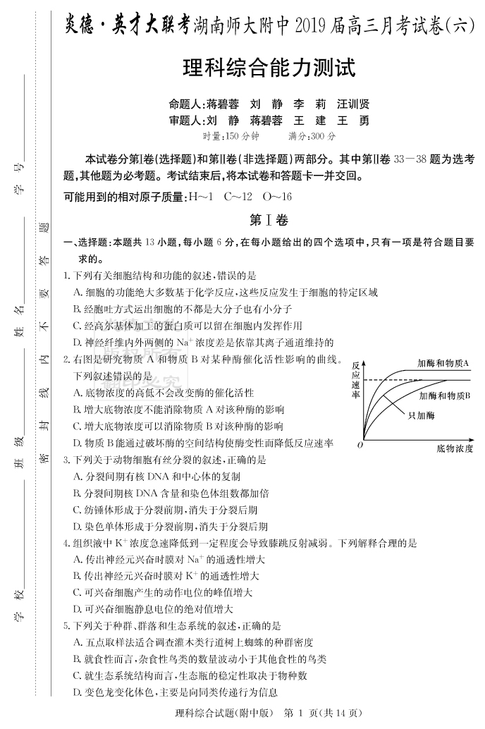 2026湖南師大附中新高考考前小題訓練·生物
