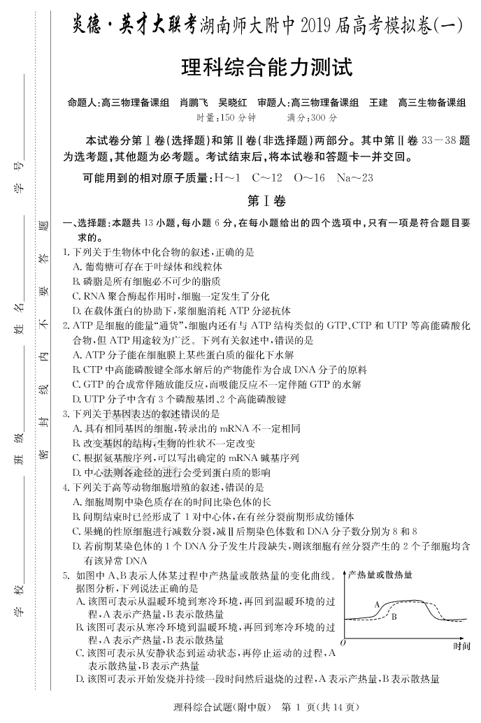 2026湖南師大附中新高考考前小題訓練·生物