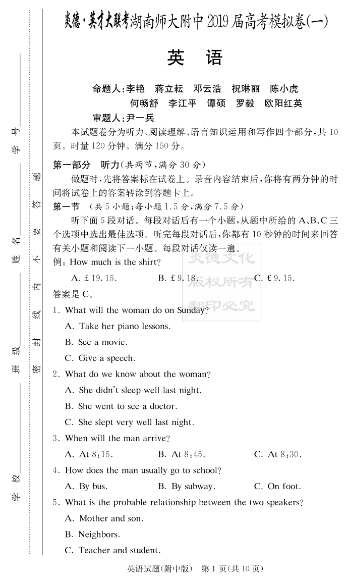 | 資源類別: | 名校月考 | |