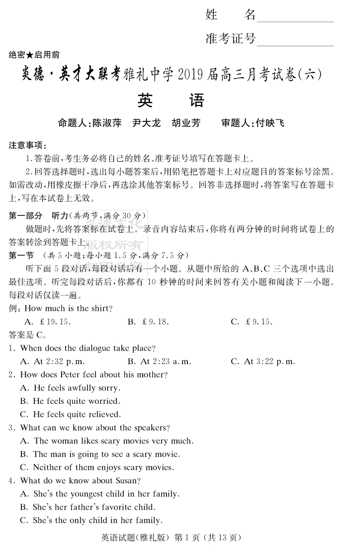 下一篇:【語文】炎德英才大聯考2019雅禮中學高三6次月考
