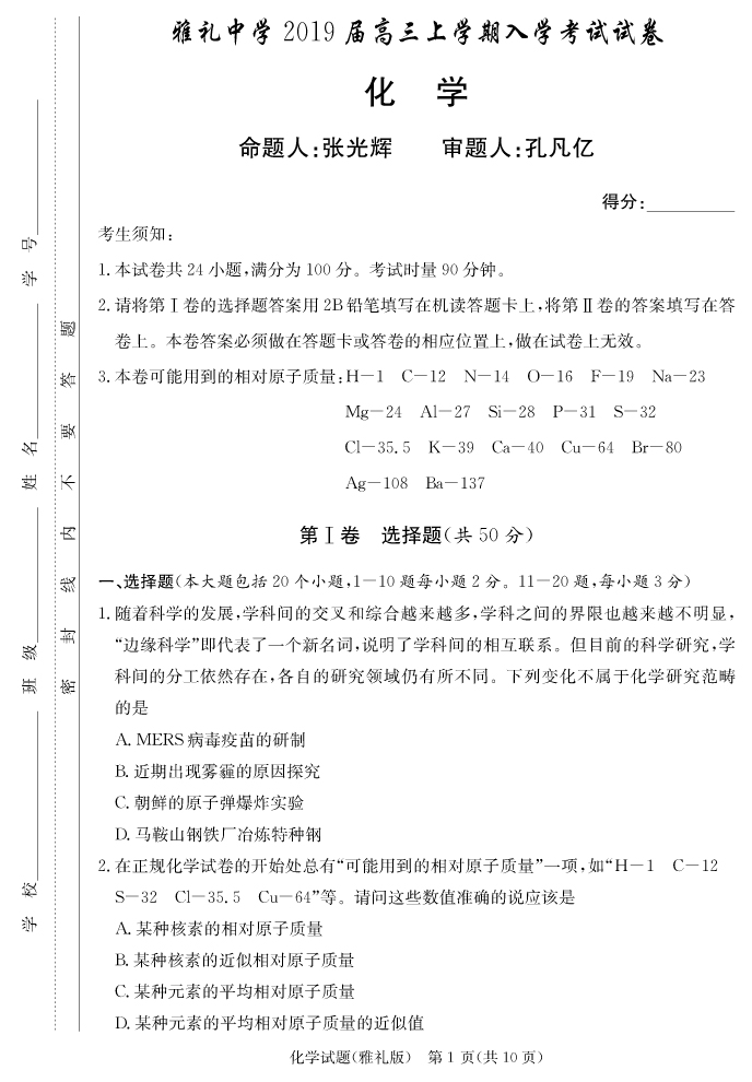 下一篇:【理數】雅禮中學2019屆高三上學期入學考試