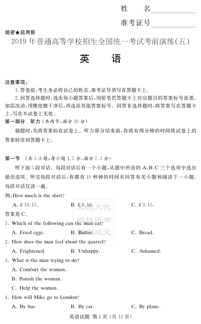 下一篇:【語文】2019年普通高等學校招生全國統一考試考前演練(五)