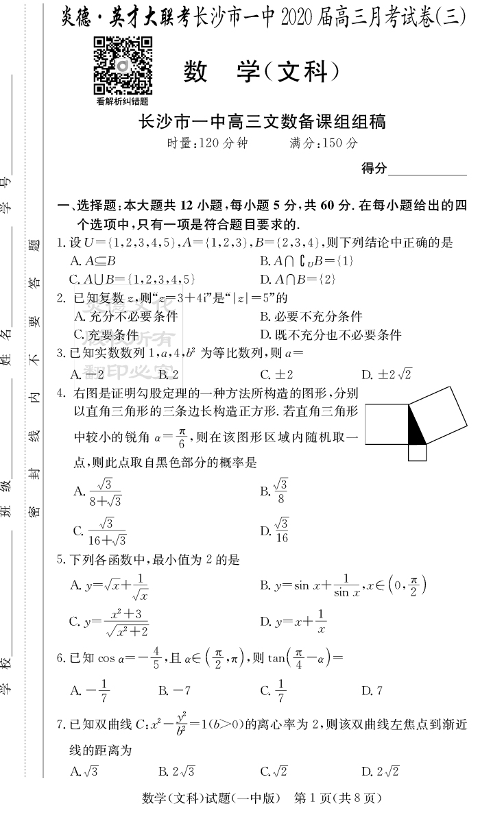 2026湖南師大附中新高考考前小題訓練·數學
