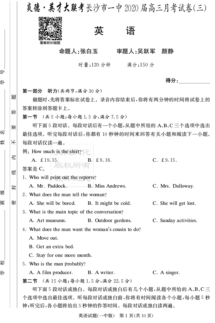 | 資源類別: | 名校月考 | |