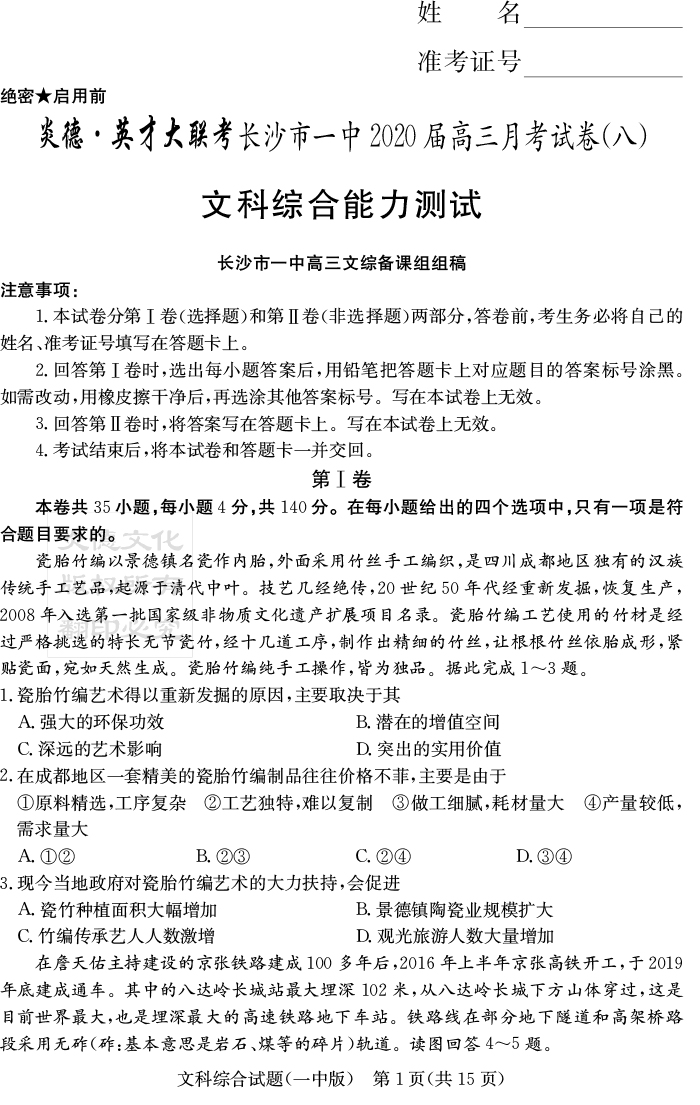 上一篇:【文數】炎德英才大聯考2020屆長沙市一中高三8次月考