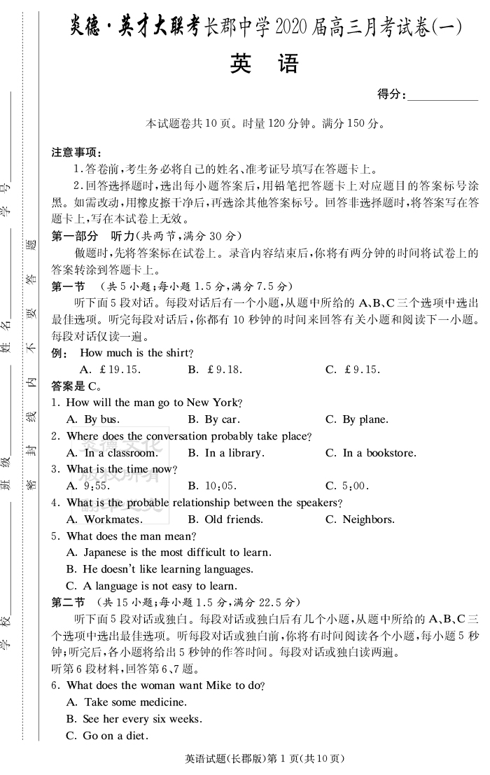 下一篇:【語文】炎德英才大聯考2020屆長郡中學高三1次月考