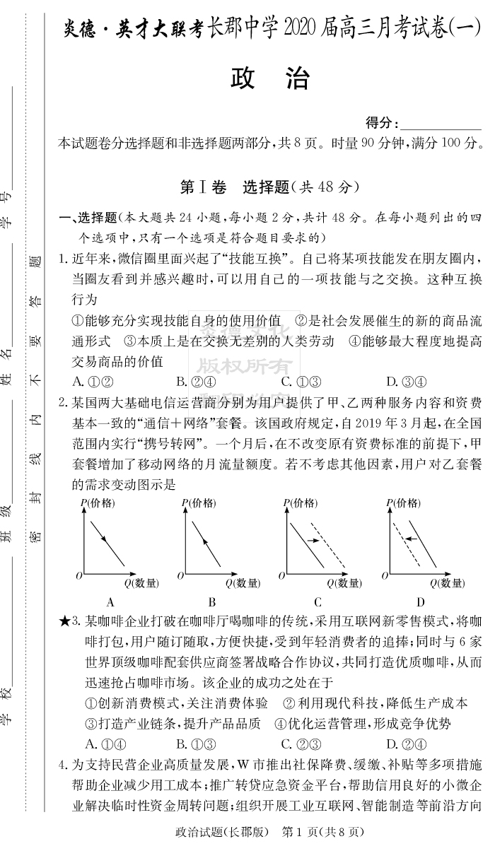 2026長郡中學新高考考前小題沖刺訓練·政治